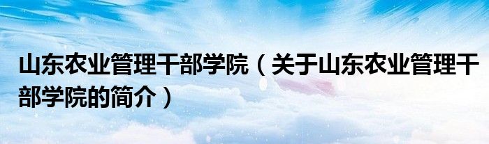 本文關于山東農業管理干部學院的簡介就講解完畢,希望對大家有所幫助。