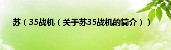 本文關于蘇 35戰機的簡介就講解完畢,希望對大家有所幫助。