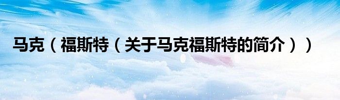 本文關(guān)于馬克 福斯特的簡(jiǎn)介就講解完畢,希望對(duì)大家有所幫助。