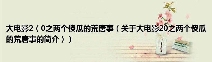 本文關于大電影2 0之兩個傻瓜的荒唐事的簡介就講解完畢,希望對大家有所幫助。