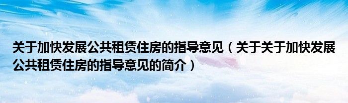 大家好,關于加快發展公共租賃住房的指導意見,關于關于加快發展公共租賃住房的指導意見的簡介很多人還不知道,現在讓我們一起來看看吧!