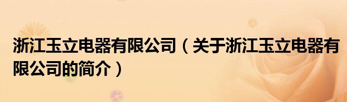 本文關于浙江玉立電器有限公司的簡介就講解完畢,希望對大家有所幫助。