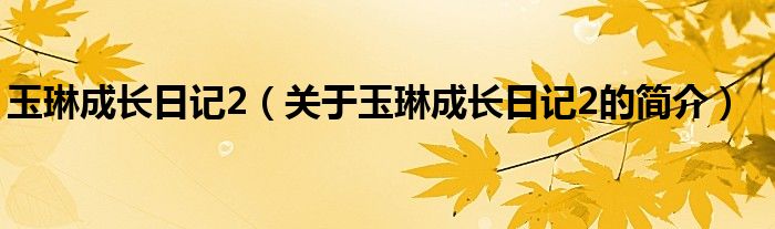 本文關于玉琳成長日記2的簡介就講解完畢,希望對大家有所幫助。