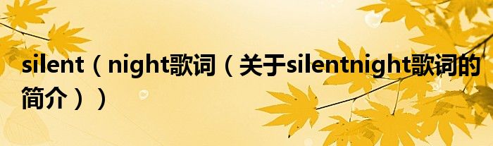 本文關于silent night歌詞的簡介就講解完畢,希望對大家有所幫助。