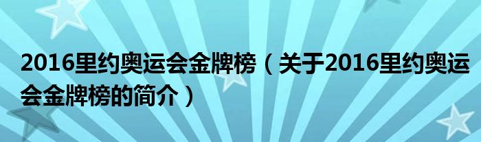 本文關(guān)于2016里約奧運會金牌榜的簡介就講解完畢,希望對大家有所幫助。