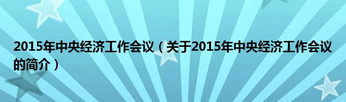 本文關于2015年中央經濟工作會議的簡介就講解完畢,希望對大家有所幫助。
