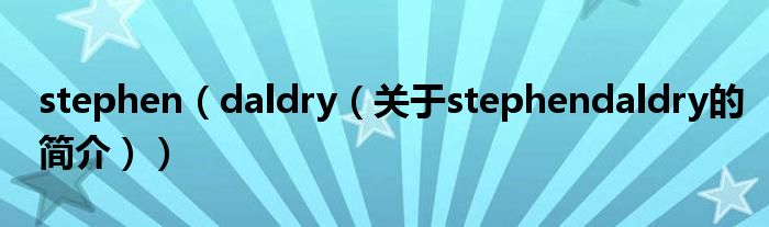 大家好,stephen daldry,關于stephen daldry的簡介很多人還不知道,現在讓我們一起來看看吧!