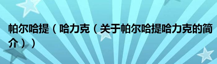 本文關于帕爾哈提 哈力克的簡介就講解完畢,希望對大家有所幫助。