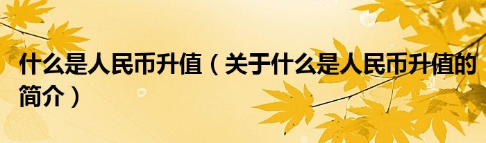 本文關(guān)于什么是人民幣升值的簡(jiǎn)介就講解完畢,希望對(duì)大家有所幫助。