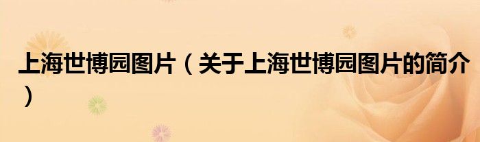 本文關于上海世博園圖片的簡介就講解完畢,希望對大家有所幫助。