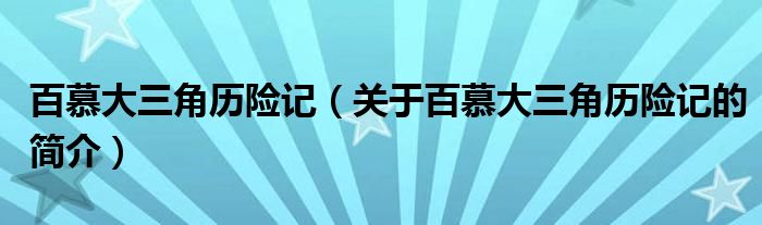 大家好,百慕大三角歷險記,關于百慕大三角歷險記的簡介很多人還不知道,現在讓我們一起來看看吧!