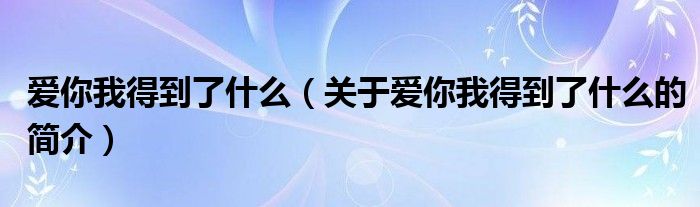 本文關于愛你我得到了什么的簡介就講解完畢,希望對大家有所幫助。