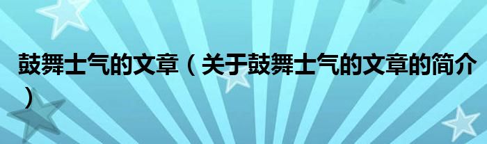 大家好,鼓舞士氣的文章,關于鼓舞士氣的文章的簡介很多人還不知道,現在讓我們一起來看看吧!