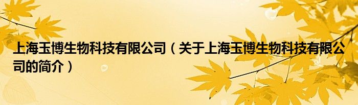 本文關于上海玉博生物科技有限公司的簡介就講解完畢,希望對大家有所幫助。