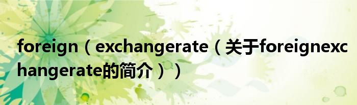 大家好,foreign exchange rate,關于foreign exchange rate的簡介很多人還不知道,現在讓我們一起來看看吧!