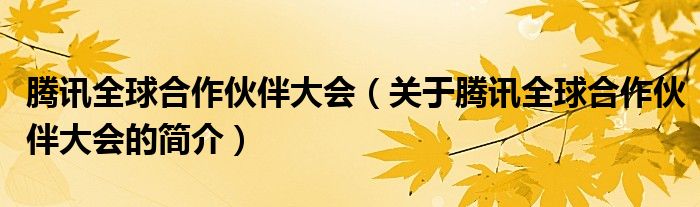 大家好,騰訊全球合作伙伴大會,關于騰訊全球合作伙伴大會的簡介很多人還不知道,現在讓我們一起來看看吧!