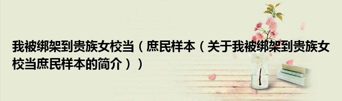 本文關(guān)于我被綁架到貴族女校當(dāng) 庶民樣本的簡介就講解完畢,希望對大家有所幫助。
