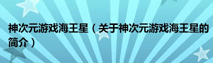 本文關于神次元游戲海王星的簡介就講解完畢,希望對大家有所幫助。