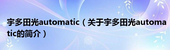 本文關于宇多田光automatic的簡介就講解完畢,希望對大家有所幫助。