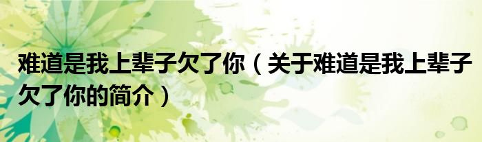 大家好,難道是我上輩子欠了你,關于難道是我上輩子欠了你的簡介很多人還不知道,現在讓我們一起來看看吧!