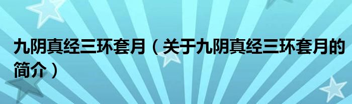 本文關于九陰真經三環套月的簡介就講解完畢,希望對大家有所幫助。