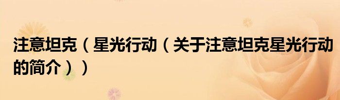 大家好,注意坦克 星光行動,關(guān)于注意坦克 星光行動的簡介很多人還不知道,現(xiàn)在讓我們一起來看看吧!