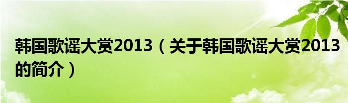 大家好,韓國歌謠大賞2013,關于韓國歌謠大賞2013的簡介很多人還不知道,現在讓我們一起來看看吧!
