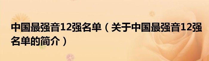 大家好,中國最強音12強名單,關于中國最強音12強名單的簡介很多人還不知道,現在讓我們一起來看看吧!
