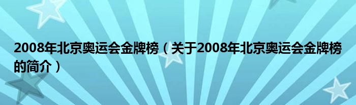 本文關于2008年北京奧運會金牌榜的簡介就講解完畢,希望對大家有所幫助。