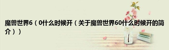 大家好,魔獸世界6 0什么時候開,關于魔獸世界6 0什么時候開的簡介很多人還不知道,現在讓我們一起來看看吧!