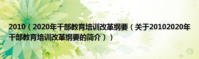 本文關于2010 2020年干部教育培訓改革綱要的簡介就講解完畢,希望對大家有所幫助。