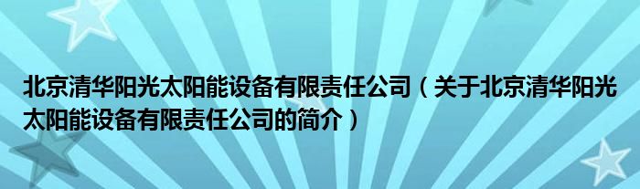 本文關于北京清華陽光太陽能設備有限責任公司的簡介就講解完畢,希望對大家有所幫助。