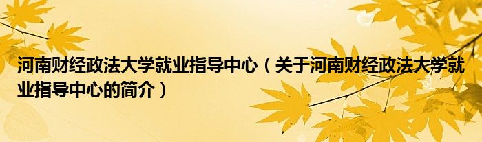 本文關于河南財經政法大學就業指導中心的簡介就講解完畢,希望對大家有所幫助。