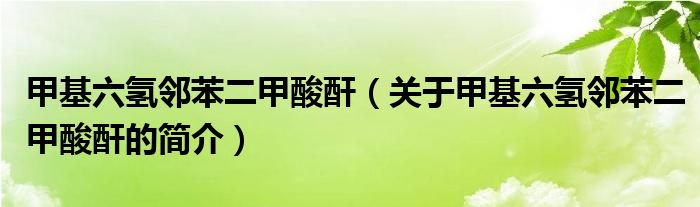 本文關于甲基六氫鄰苯二甲酸酐的簡介就講解完畢,希望對大家有所幫助。