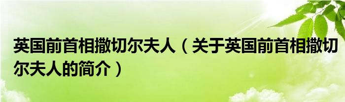 大家好,英國前首相撒切爾夫人,關于英國前首相撒切爾夫人的簡介很多人還不知道,現在讓我們一起來看看吧!