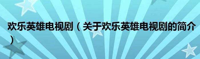 本文關(guān)于歡樂英雄電視劇的簡介就講解完畢,希望對大家有所幫助。