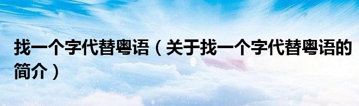 本文關于找一個字代替粵語的簡介就講解完畢,希望對大家有所幫助。