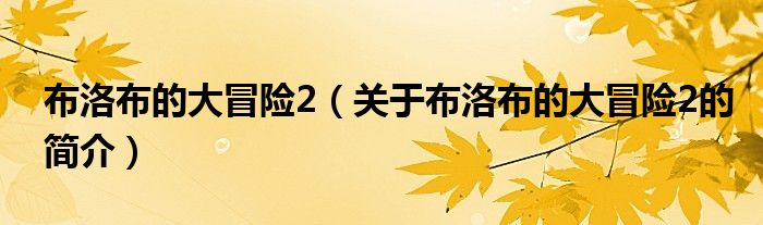 本文關(guān)于布洛布的大冒險(xiǎn)2的簡(jiǎn)介就講解完畢,希望對(duì)大家有所幫助。