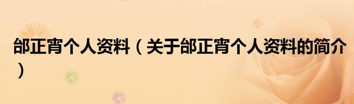 大家好,邰正宵個人資料,關于邰正宵個人資料的簡介很多人還不知道,現在讓我們一起來看看吧!