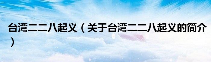 大家好,臺(tái)灣二二八起義,關(guān)于臺(tái)灣二二八起義的簡(jiǎn)介很多人還不知道,現(xiàn)在讓我們一起來看看吧!