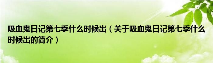 本文關(guān)于吸血鬼日記第七季什么時(shí)候出的簡(jiǎn)介就講解完畢,希望對(duì)大家有所幫助。