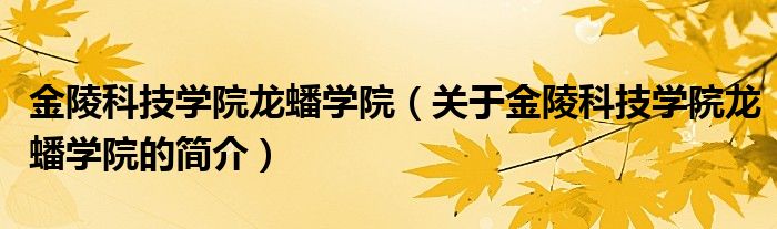 大家好,金陵科技學院龍蟠學院,關于金陵科技學院龍蟠學院的簡介很多人還不知道,現(xiàn)在讓我們一起來看看吧!