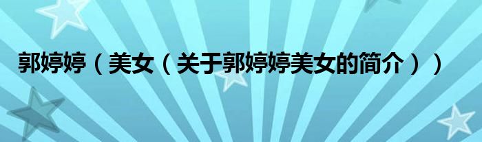本文關于郭婷婷 美女的簡介就講解完畢,希望對大家有所幫助。