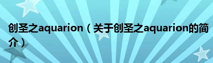 大家好,創(chuàng)圣之aquarion,關于創(chuàng)圣之aquarion的簡介很多人還不知道,現(xiàn)在讓我們一起來看看吧!