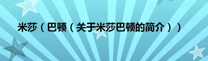 大家好,米莎 巴頓,關于米莎 巴頓的簡介很多人還不知道,現在讓我們一起來看看吧!