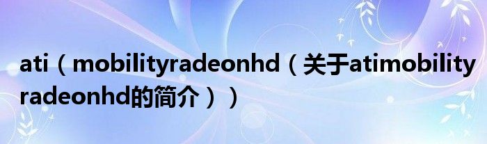 本文關于ati mobility radeon hd的簡介就講解完畢,希望對大家有所幫助。