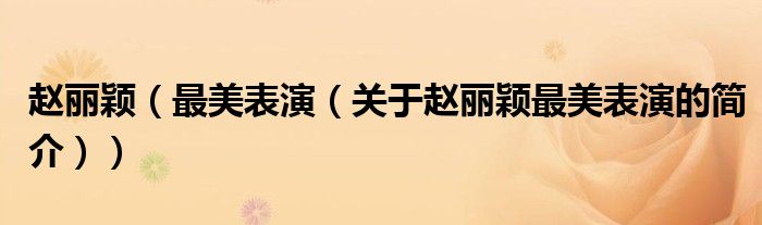 大家好,趙麗穎 最美表演,關于趙麗穎 最美表演的簡介很多人還不知道,現在讓我們一起來看看吧!