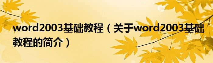 本文關于word2003基礎教程的簡介就講解完畢,希望對大家有所幫助。