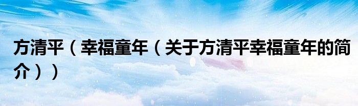 大家好,方清平 幸福童年,關(guān)于方清平 幸福童年的簡介很多人還不知道,現(xiàn)在讓我們一起來看看吧!