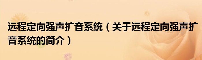 本文關(guān)于遠(yuǎn)程定向強(qiáng)聲擴(kuò)音系統(tǒng)的簡介就講解完畢,希望對大家有所幫助。